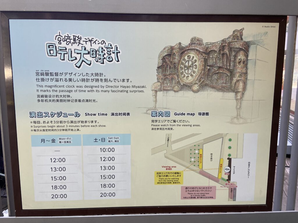 まず訪れた日テレ大時計は、宮崎駿監督が手掛けた巨大からくり時計。