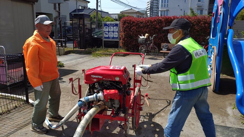 令和8年4月17日(金)赤塚児童公園にて、今年度最初のポンプ操作訓練を実施いたしました。