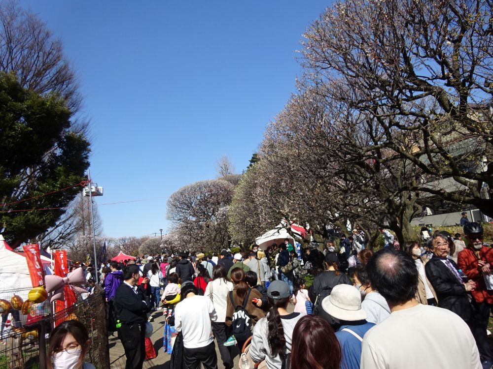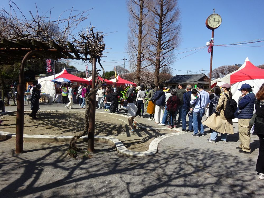 今年は暖かさが続いた影響で、赤塚城址脇の梅林や会場内の梅が少し散り始めていたのが、ほんの少しだけ残念でした。それでも、淡い香りを残した梅の枝越しに広がる青空は、春の訪れを感じさせてくれる美しい景色でした。