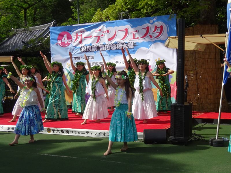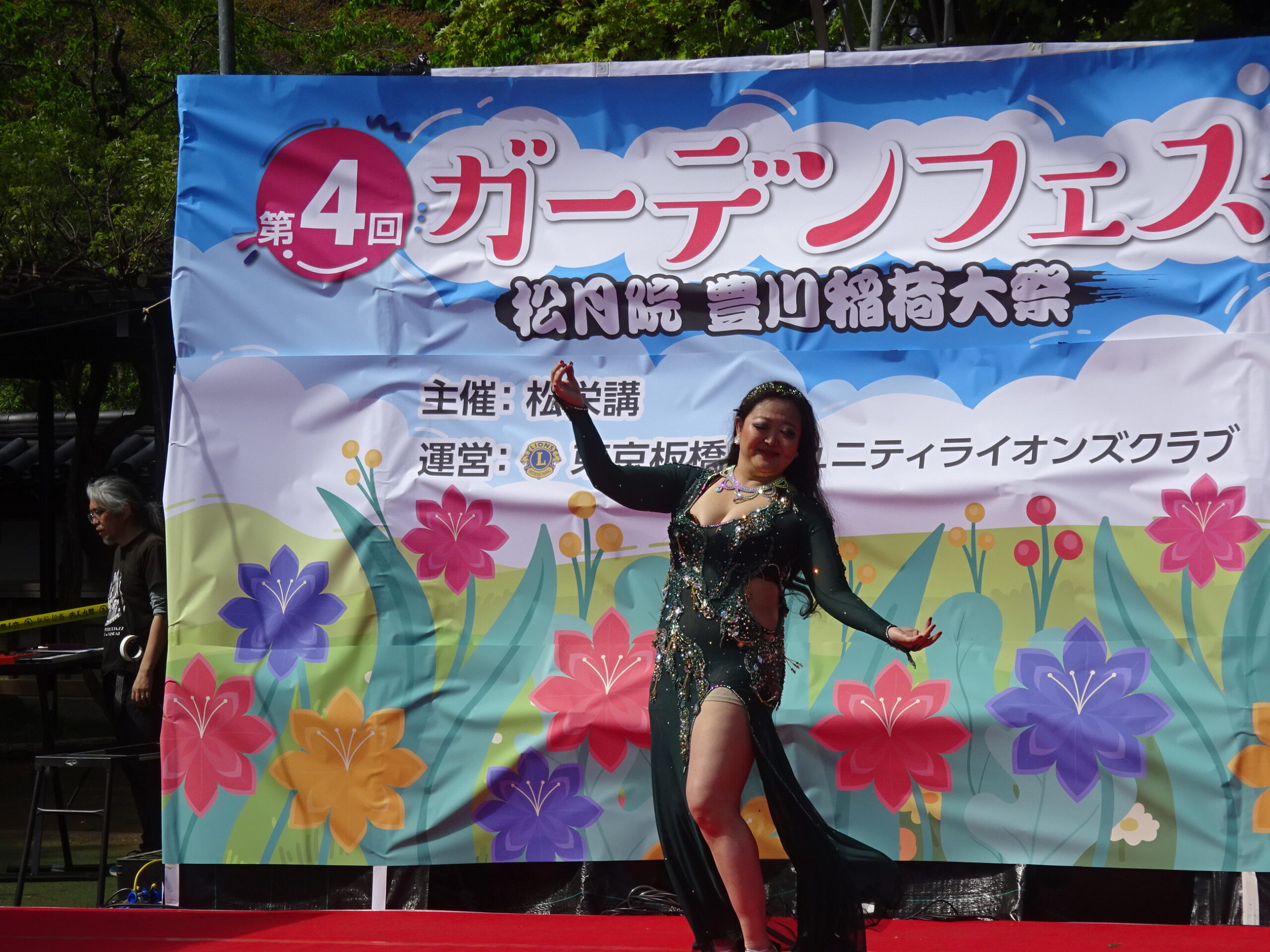 特設ステージでは、写真にもある赤塚第三中学校吹奏楽部の力強い演奏を皮切りに、フラダンス、ベリーダンス、赤塚神社獅子舞保存会など、多彩なパフォーマンスが次々と披露されました。歴史ある松月院の境内に響く音楽と舞は、訪れた人々を魅了し、しばし足を止めて見入る姿が印象的でした。