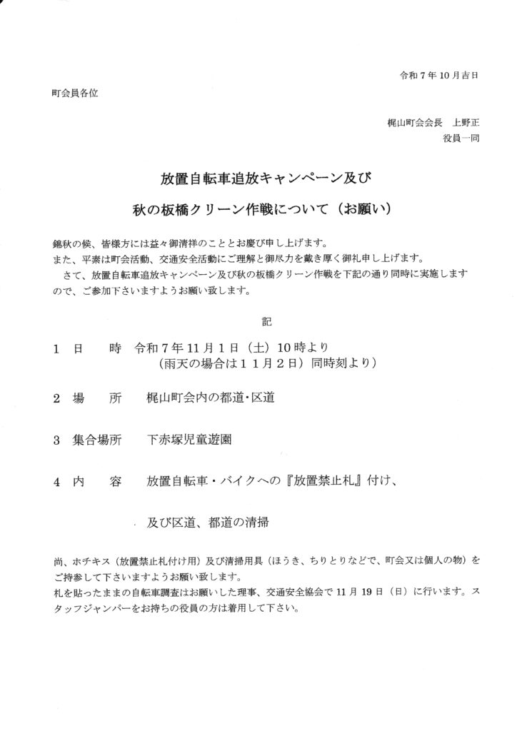 秋のクリーン作戦・放置自転車追放キャンペーンのお知らせ
